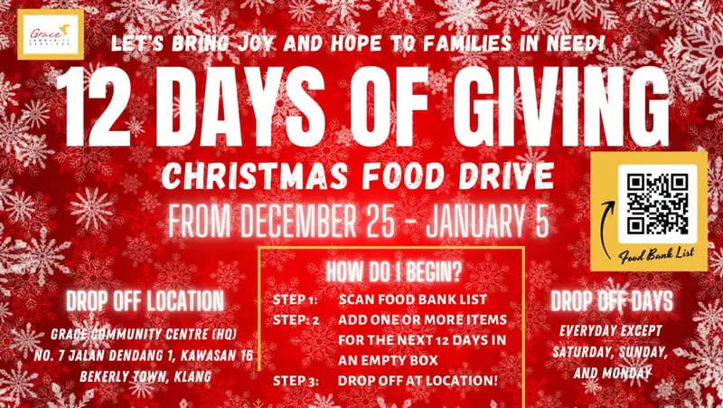 Grace Community Services, one of the non-profit organisations receiving food surplus from TLFP, is organising a “12 Days of Giving Christmas Food Drive” from Dec 25, 2022 to Jan 5, 2023.
